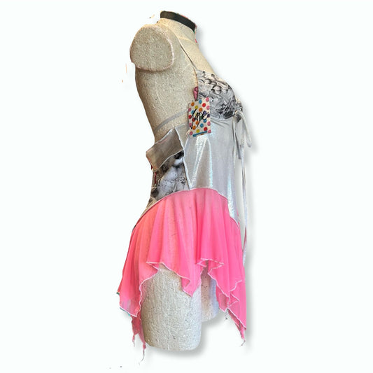 (R2S) UK 8 - Silver / pink mesh Dixie dress - Long length