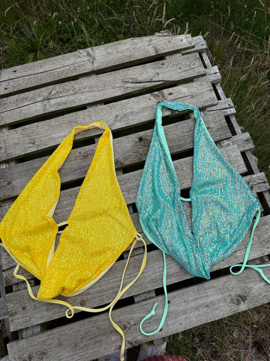 Aqua sequin Drop top shorts set