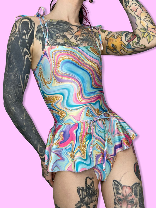 30% off Pastel Swirl- Skirted spaghetti leotard set