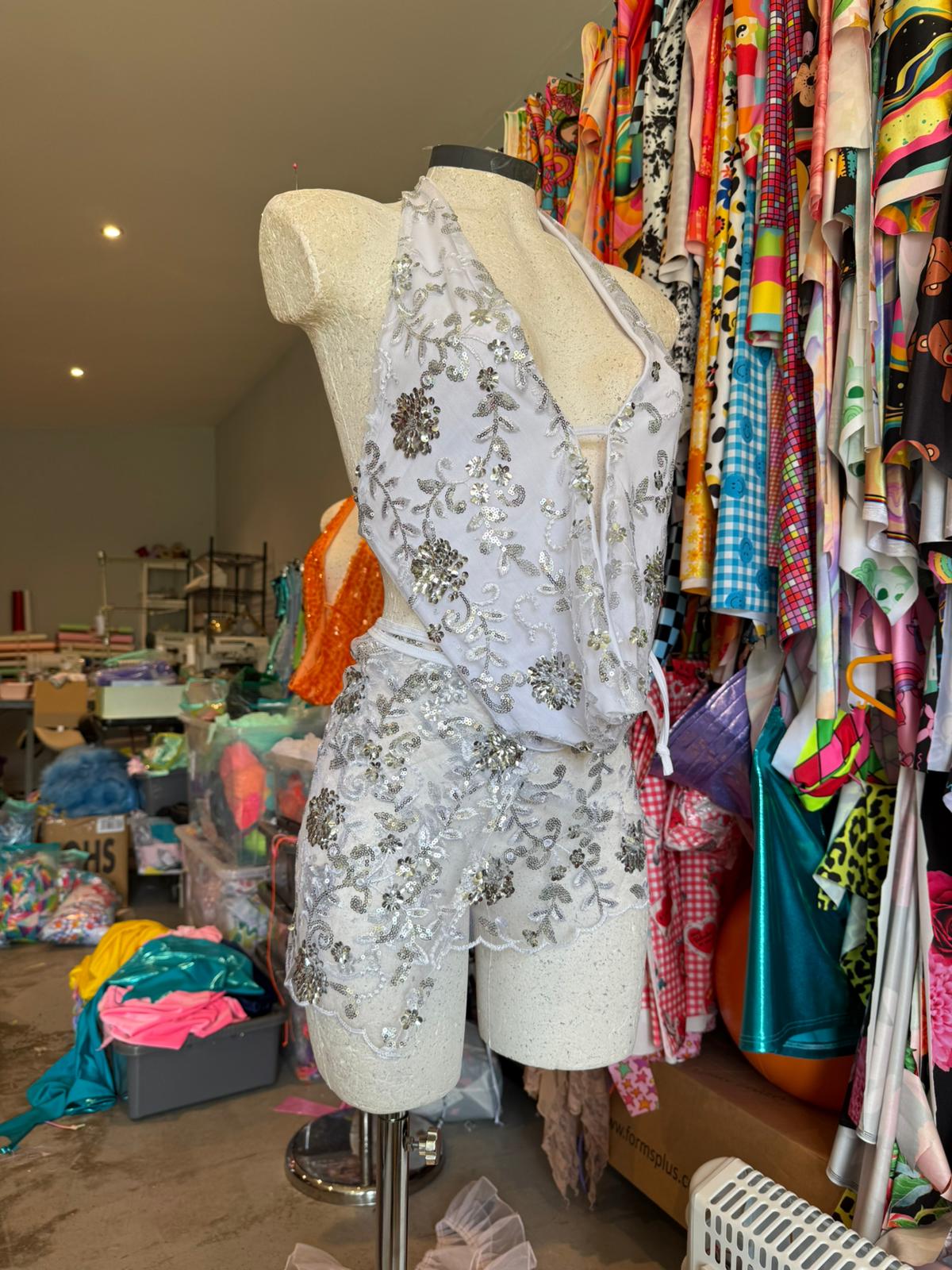 Sequin plunge halter neck top - lined with tie up back