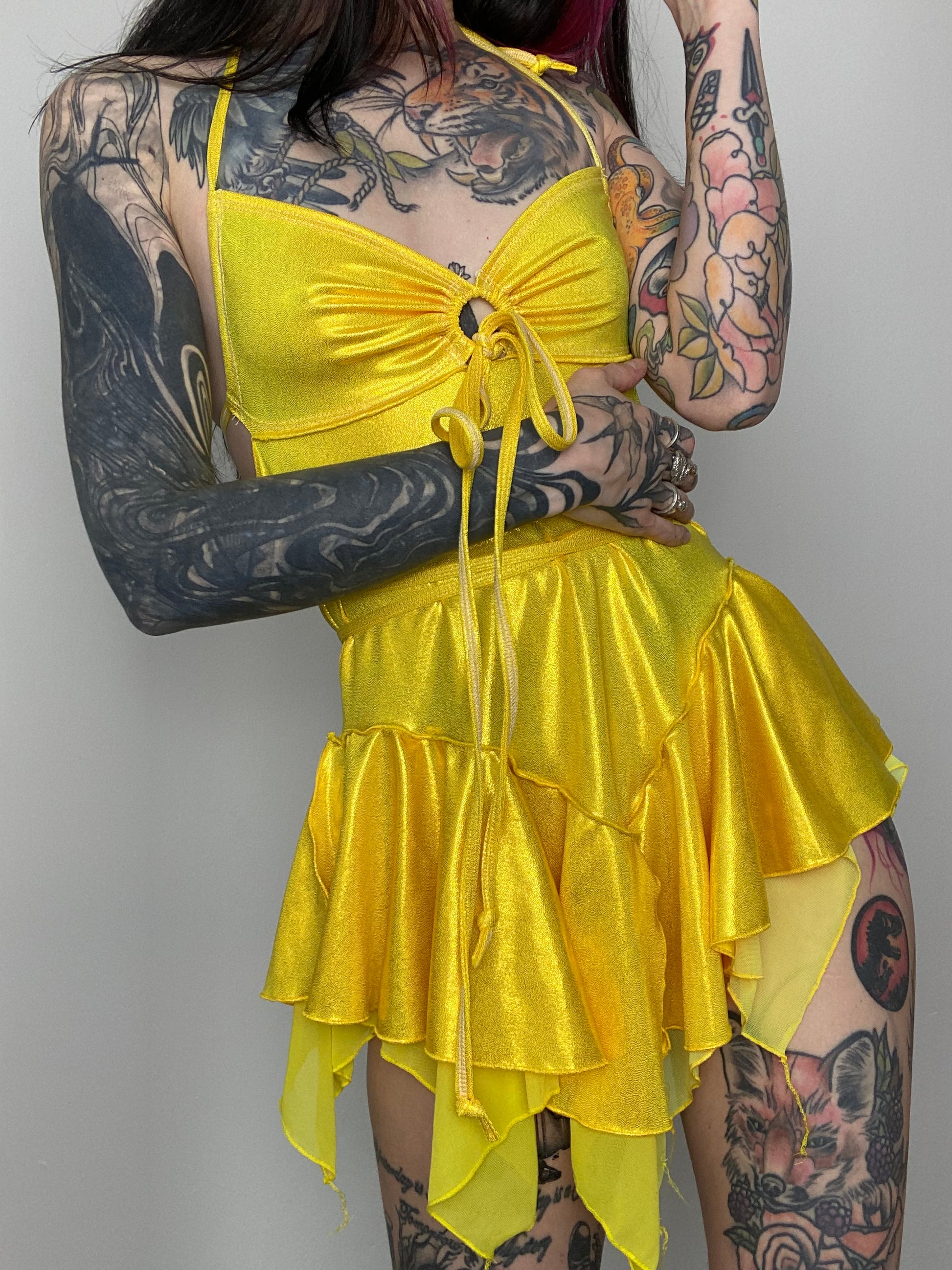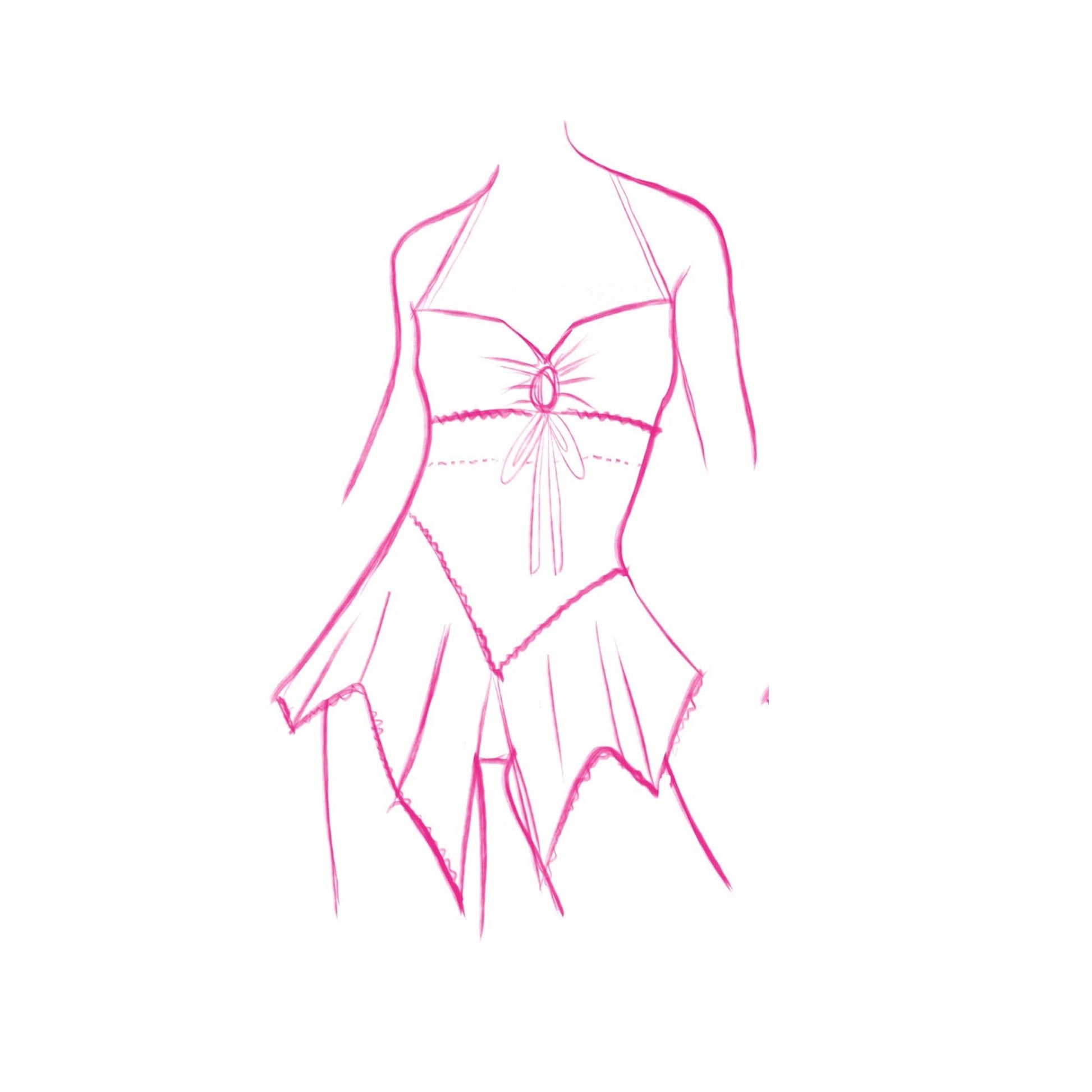 Layering on the dixie can be maximum three layers, for example one spandex and two mesh layers or all three layers of mesh as the skirt. They can also be rounded or pointed for a more pixie feel.