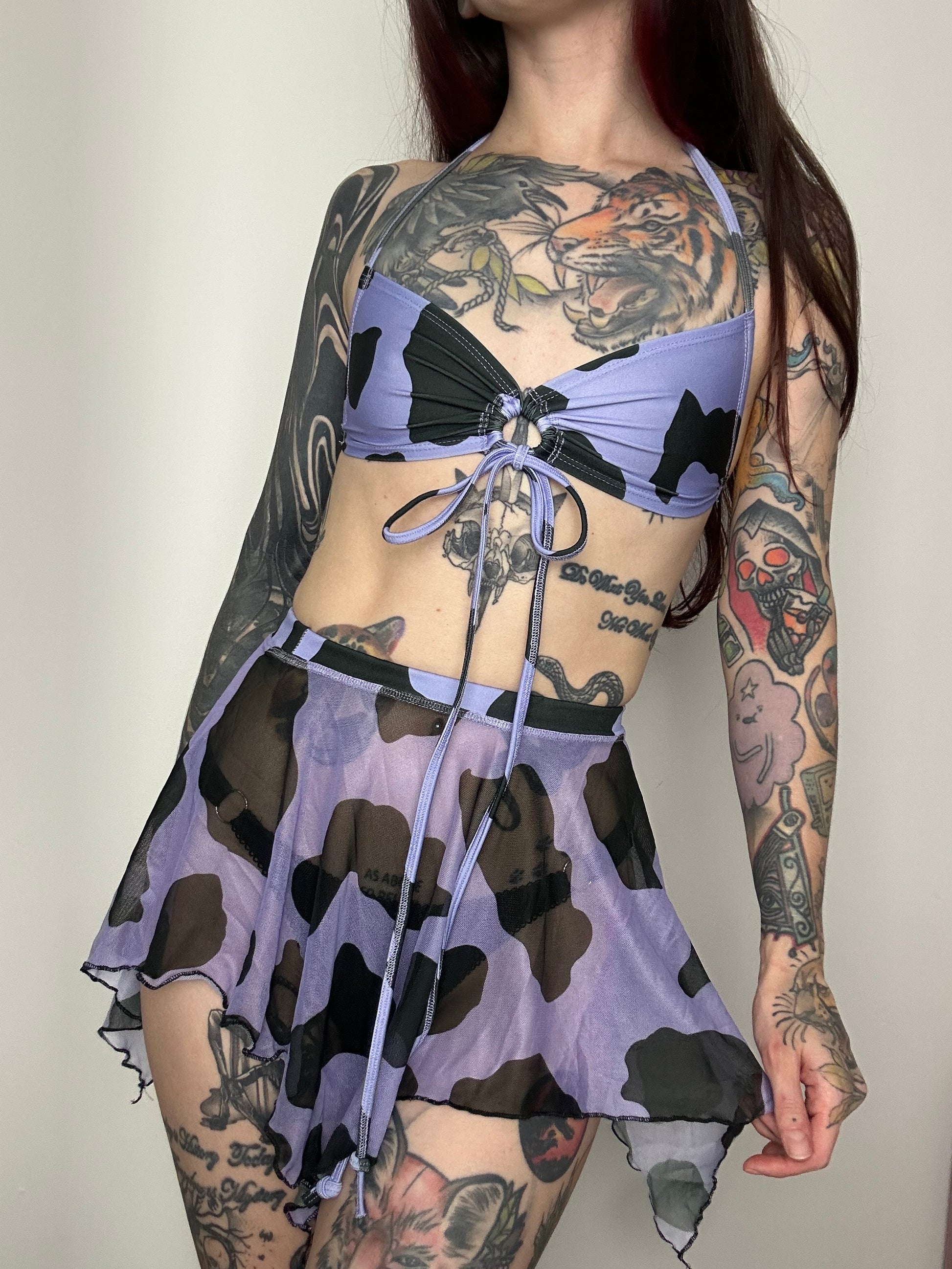 Remixed Mesh skirt set - Lilac Cow