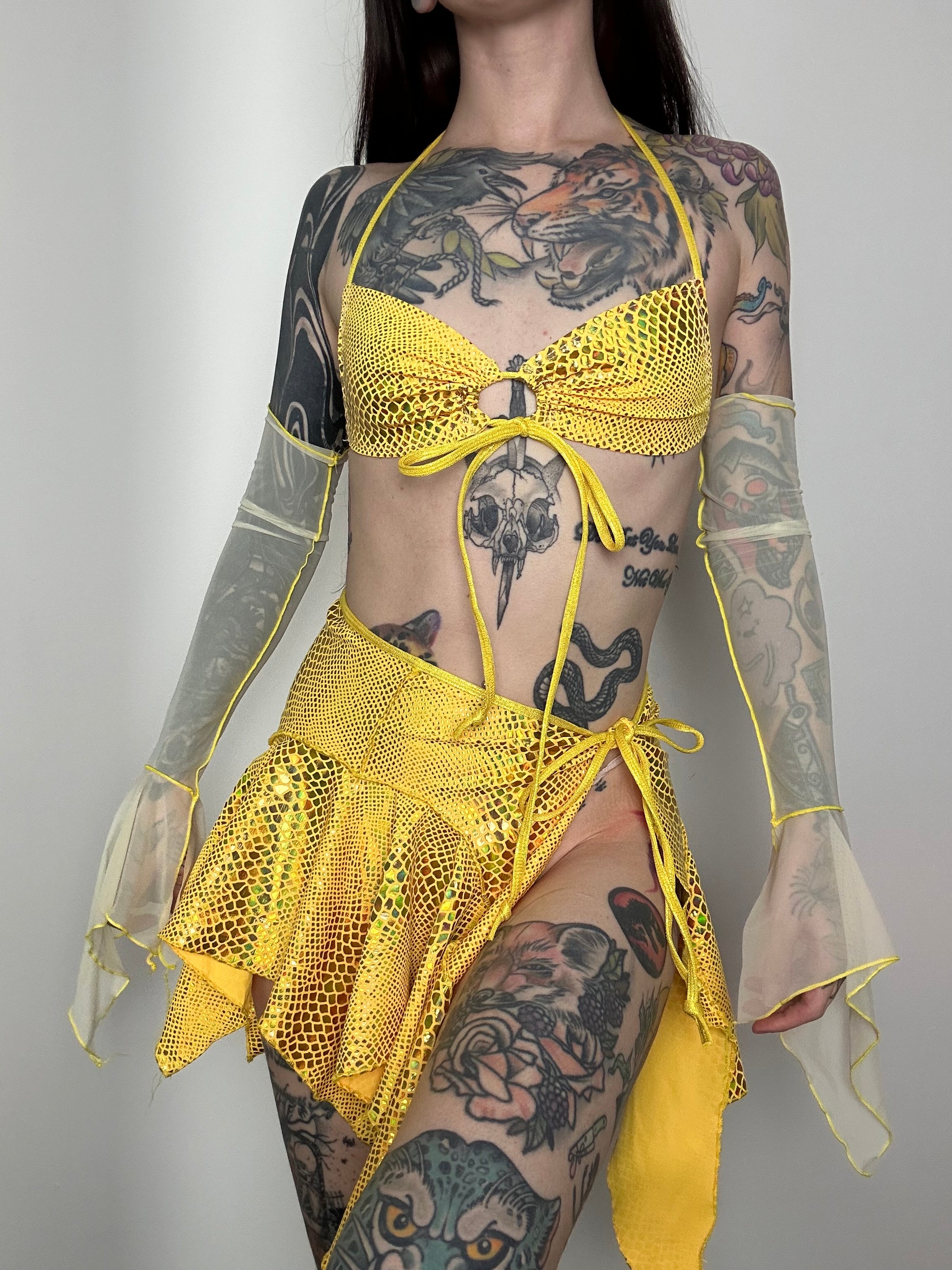 Set consists of 3 Items: (+ optional bikini bottoms to wear under the skirt.)